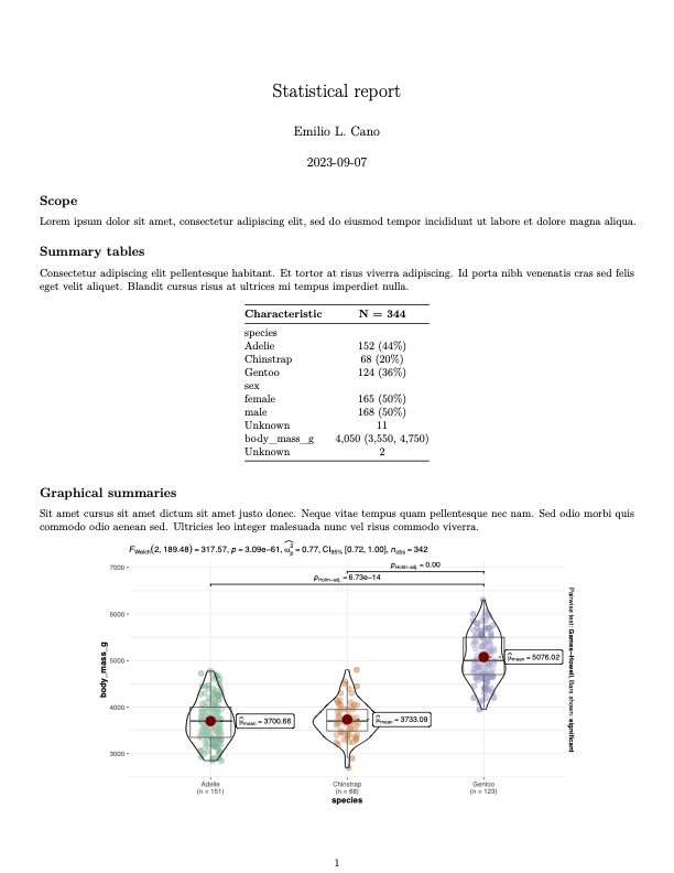 Informes estadísticos: Normalmente resultados clave con gráficos, tablas e interpretación. Seleccionados por analista