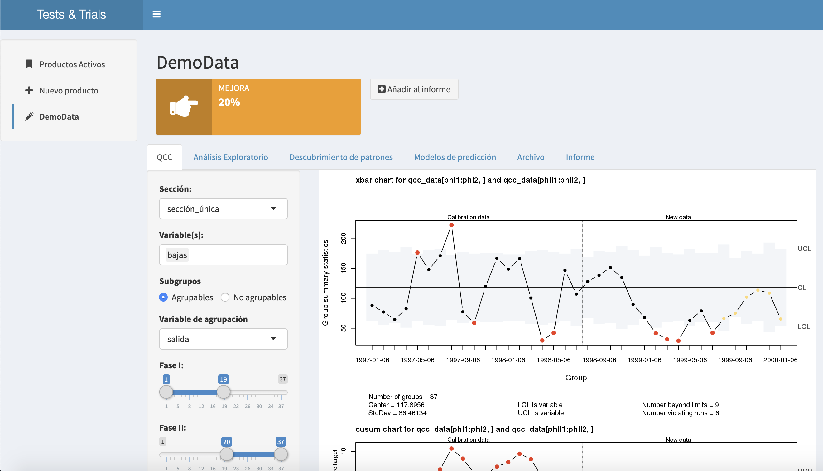 Modifica el código de la aplicación para hacer el análisis en fase 2 tomando el resto de datos como en el ejemplo de la ayuda de la función qcc()